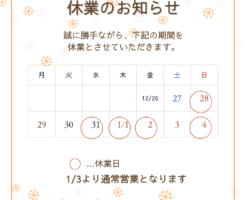 訪問看護ステーションひまわり越谷の年内最後の営業は12/30となります。 年始は1/3より通常営業となります。 ご不便をお掛けいたしますが宜しくお願い致します。